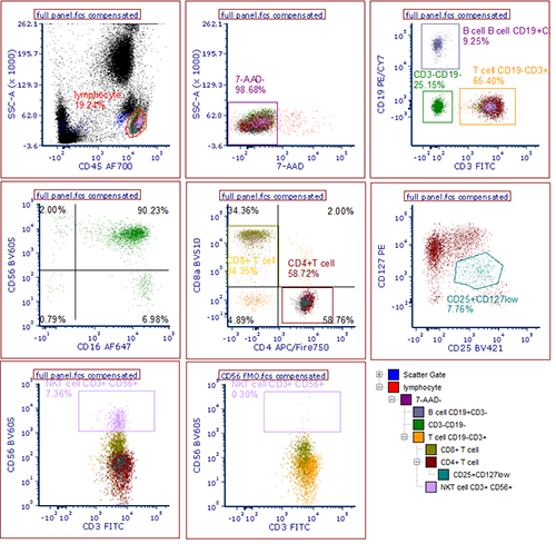 這次上機課程分為3個部分:T/B/NK/NKT/Treg10色檢測;Th1/Th2檢測;LEGENDplex多因子DEMO實驗。上機課程中達科為技術(shù)團隊為大家詳細(xì)介紹本次實驗的相關(guān)內(nèi)容,包括: marker選擇、panel設(shè)置、對照選擇/設(shè)置,protocol染色操作及注意事項。關(guān)于操作部分,表染及胞內(nèi)染色的 DEMO實驗之后詳細(xì)演示了儀器電壓補償?shù)恼{(diào)節(jié),同型對照及FMO對照的應(yīng)用等。