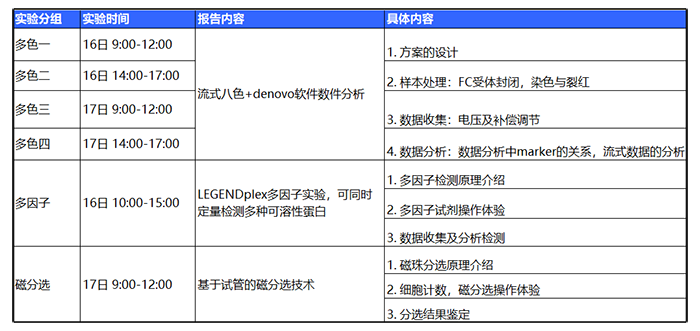 *注:請注意多色一、二、三、四為同一實(shí)驗(yàn),請根據(jù)自己的時(shí)間報(bào)名,請勿重復(fù)報(bào)名。上機(jī)實(shí)訓(xùn)多色實(shí)驗(yàn)擬招40人,多因子實(shí)驗(yàn)與磁分選實(shí)驗(yàn)分別擬招10人。