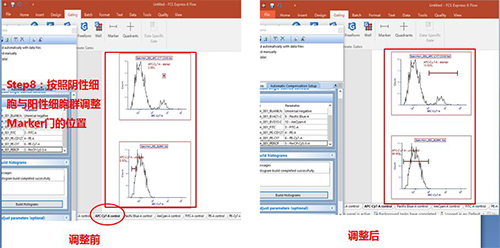圈好門之后,選中單管Control版面,按照陰性細胞與陽性細胞的位置調整Marker門的位置。