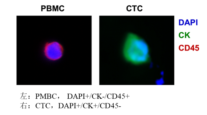 典型CTC,是指已經(jīng)被確認(rèn)為癌癥細(xì)胞的CTC,具有完整的活性細(xì)胞核、表達(dá)細(xì)胞角蛋白(上皮來源)、CD45陰性(非造血來源),并且通常是不規(guī)則形狀或亞細(xì)胞形態(tài)的較大細(xì)胞;