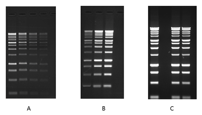 B:lane 1~3 上樣量分別是200, 500, 800 ng/孔;
