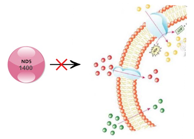 一是分子量。ND5的分子量約為1400,是油性大分子染料,不能穿過細胞膜上的通道。