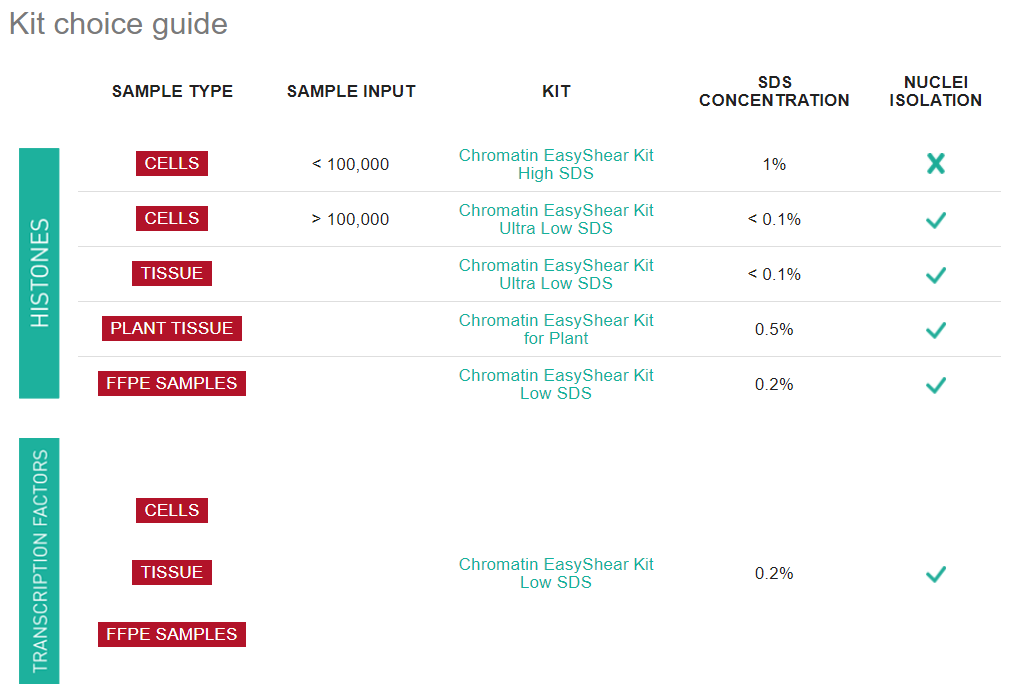 Chromatin EasyShear Kit技術特點: