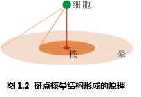 ELISPOT板膜,就會被板膜上的包被抗體捕獲。在所有從細胞到斑膜的路徑中,有條路徑短,這就是位于細胞正下方到板膜的垂直距離。路徑越短,擴散中耗散損失就越少,到達該點的細胞因子就越多,將來顯色的時候顏色就越深。以垂直距離點為圓心,向外畫一系列的同心圓,同心圓的直徑越大,細胞因子擴散的距離就越長,耗散越多,到達的細胞因子就越少,顏色就越淺。當(dāng)超過一定距離之后,擴散到達的細胞因子就減少到背景水平了,這就是斑點的邊界。