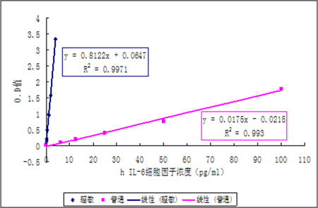 以人IL-6 ELISA產品為例,超敏試劑盒與普通試劑盒實驗對比圖表如下: