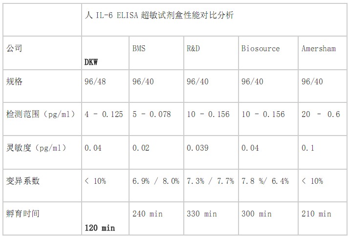 人IL-6 ELISA超敏試劑盒同類產品比較如下:
