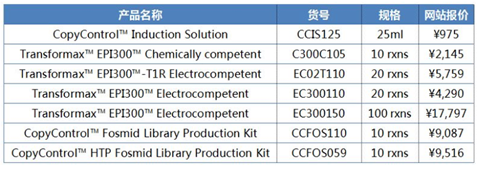 pCC1和pCC2載體含有兩個復制起始位點:單拷貝的大腸桿菌F-因子復制子和誘導型的高拷貝oriV。其中OriV的啟動,需要trfA基因產(chǎn)物,由CopyControl?的另一個重要成分——TransforMax? EPI300 E.coli菌株提供。