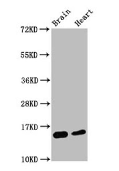圖1. 使用0.55 ug/ml Histone H3.1K4me2單克隆抗體(貨號(hào):A68400)檢測(cè)小鼠腦和心臟組織Histone H3.1K4me2蛋白表達(dá)水平,檢測(cè)到目的蛋白大小15 KDa。